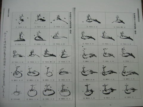 伊達政宗の花押は20数種類あるといわれおり、鶺鴒(セキレイ)という鳥をあしらったもので、位が上がるごとに花押も変化してきています。 政宗の花押について、面白い逸話が残っています。 秀吉から、一揆煽動の証拠文書を提示され糾明を受け、公は「僞書なり」と笑い、「セキレイの花押の眼には必ず針で穴を開けているが、これには穴がない」と釈明する。和久の持ってきた秀吉宛の公の書状には穴が開いていたので、秀吉は沈黙した。これは大河ドラマのシーンにもあります。 |