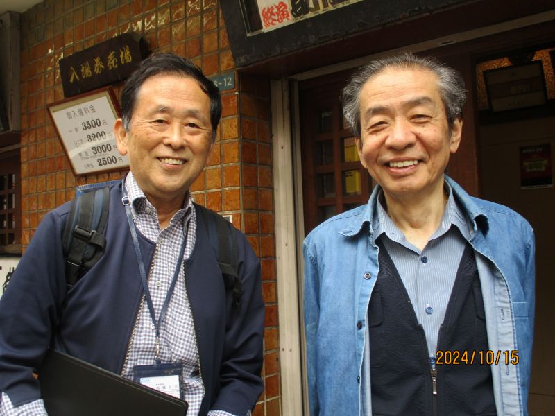 おっとなんと「活動映画の坂本頼光さん」団体で「日本セカンドライフ協会の皆さんも」と紹介してくれました。  ※お世話になっている末廣亭の北村会長さんとツーショット