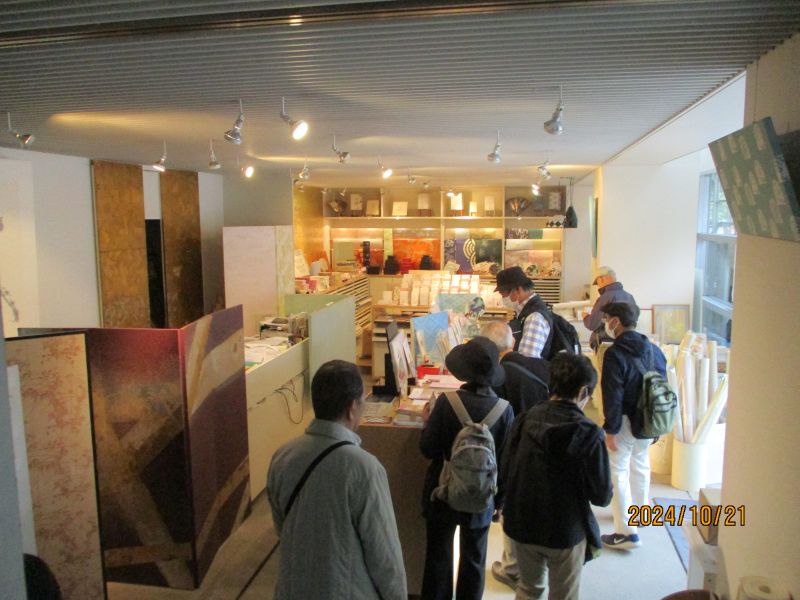 唐紙問屋「東京松屋」からスタート。お寺の多いこの地区は必然的に和紙の使用が多いところから和紙問屋が江戸時代から続くこの会社。2Fのビデオコーナーで唐紙職人の技を拝見。