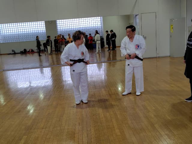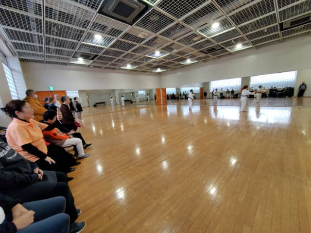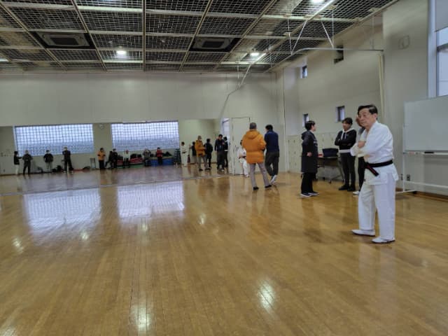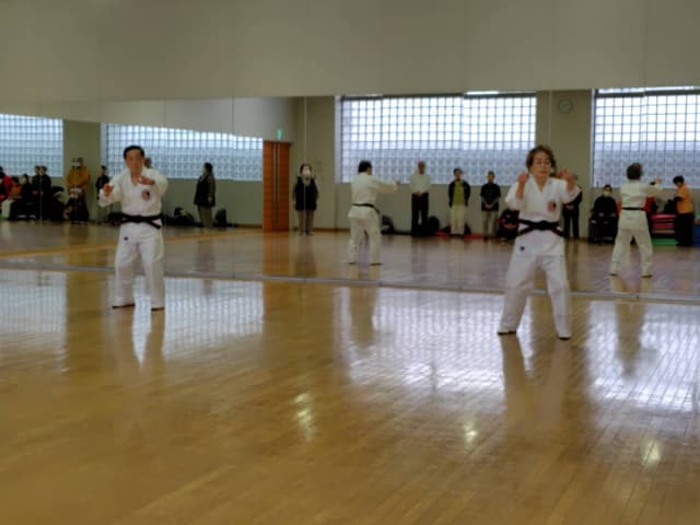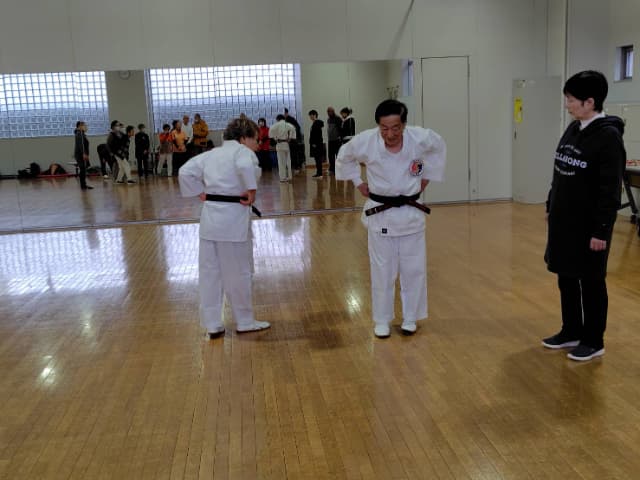新年行事として初めて「道着姿演武」を。村瀬師範と山田透師範で模範演武と道着の正式な部位説明までを説明くださいました。