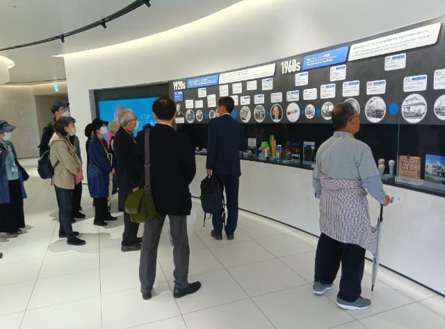 9階で受付し、会社の歴史・製品の展示がある22階へ移動した。