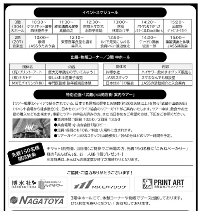 ★イベントは運営委員の方々がボランティアで企画・運営をされています。参加者の方は、無断欠席無く、時間厳守にて集合場所においでください。また運営委員の方が当日交代することもあります。ご了承ください。